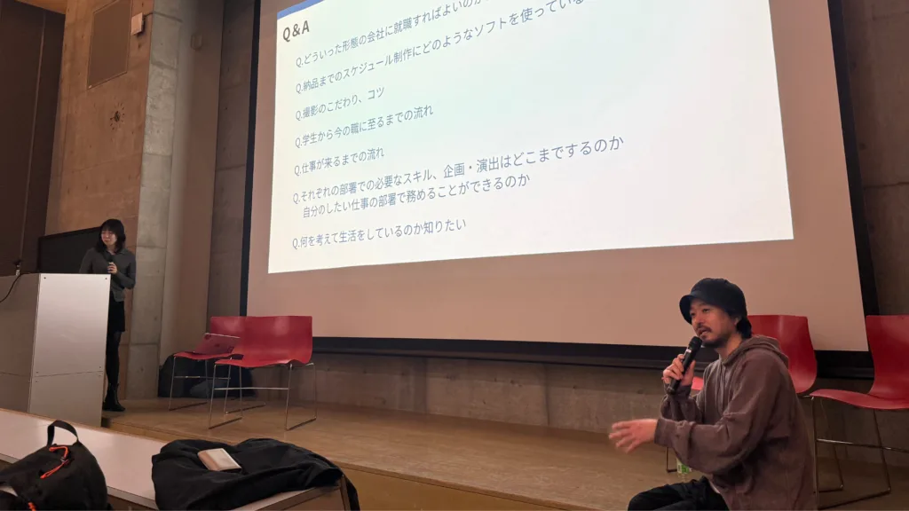 質疑応答では、技術的な質問にとどまらず、映像を創る上での判断基準や、
